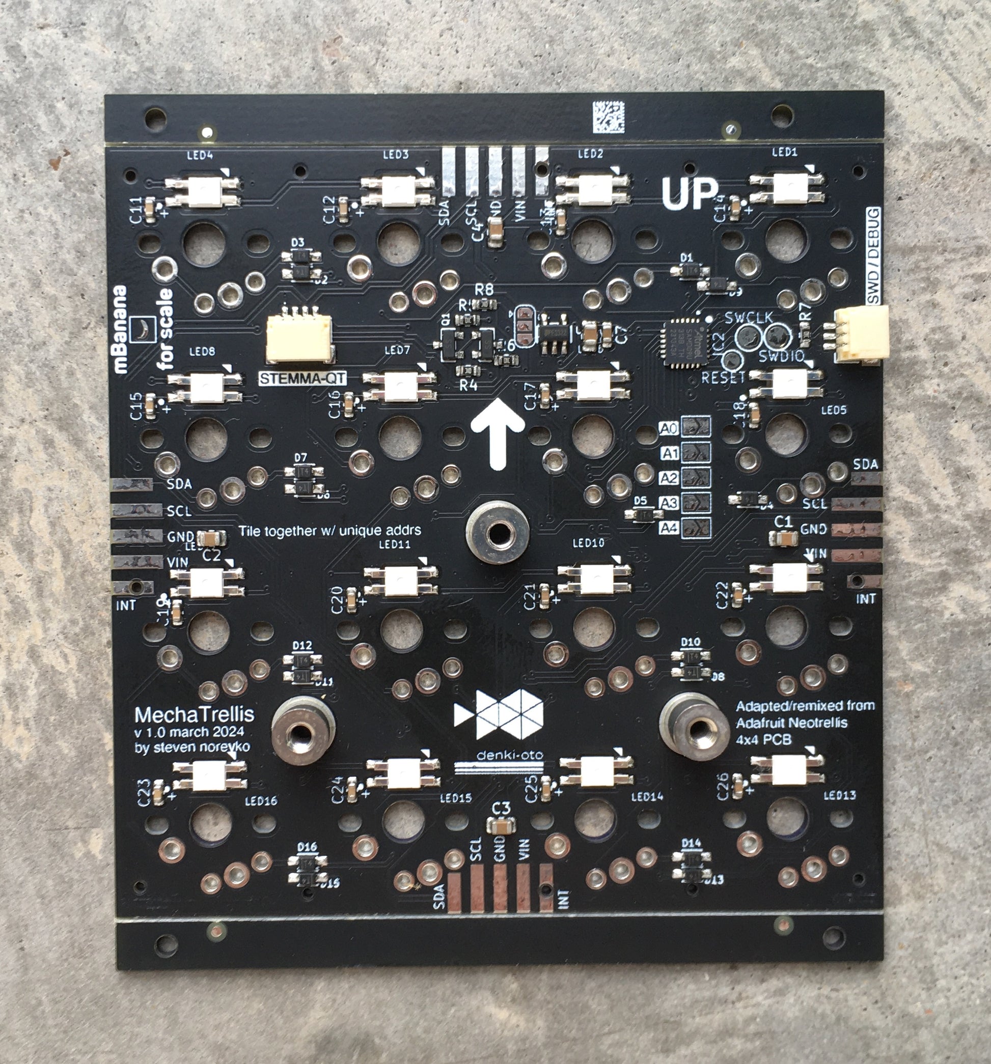 MechaTrellis is a custom remix of the popular Adafruit Neotrellis 4x4 keypad board - but re-designed for mechanical keyboard switches instead of rubber buttons.